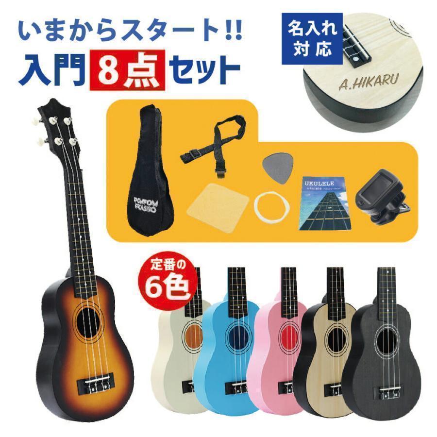 ウクレレ 初心者 8点セット ソプラノウクレレ 失敗しない 入門 趣味 大人 子供 楽器 弦楽器 初めて 名入れ プレゼント【カラー選べます】