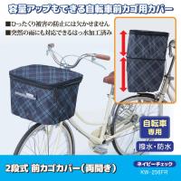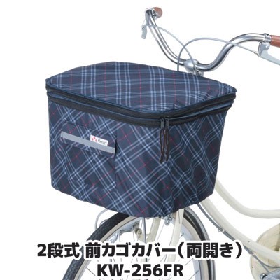 自転車 カゴカバー 前 2段式 前カゴカバー 両開き KW-256FR ネイビー チェック 撥水 防水 ひったくり防止 雨対策 川住製作所