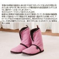 冬場のお部屋の温度は、床に近づくほど下がっていて足元などが特に冷えてしまいがちです。寒いからといって暖房器具の設定温度を上げてしまうと、頭がボ〜っとなってしまったり…。そこでこのブーツスリッパをオススメします。底部分に特殊な生地を何層にも分けて使用していて、その体温の輻射熱を使って温めるハイテク製品です。体温を底へ逃がすことが無いので、フローリングなどでの底冷えもありません。寒さが苦手という方はもちろんのこと、大切な受験生の方々には一番カラダに良いと言われている「頭寒足熱」に最適。内側の生地はフワフワモコモコで肌触りが良く、つま先から足首までカバーできます。底はすべりにくいデコボコデザインになってます。