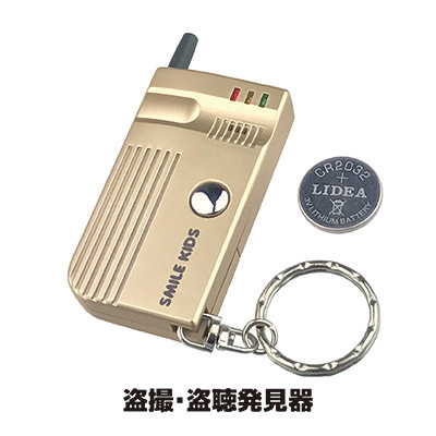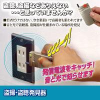音と光で盗聴器、盗撮器が仕組まれている場所を発見最近の盗撮器、盗聴器は小型化してきています。若い人だけを狙った悪質な行為、と思われていますが、近年では空き巣狙いのために使われているケースも非常に多くなって、年齢に関係なく脅威となってきてます。本品は、盗撮器・盗聴器の発信電波をキャッチして、音と光でお知らせします。その場所からの距離範囲に盗撮器・盗聴器が潜んでます。転宅時には特に要注意。出入りの多い家も狙われやすく注意が必要です。自宅だけでなく、出向いた公共の場所にも仕組まれているかも知れません。携帯して持ち歩きも可能な小型タイプです。