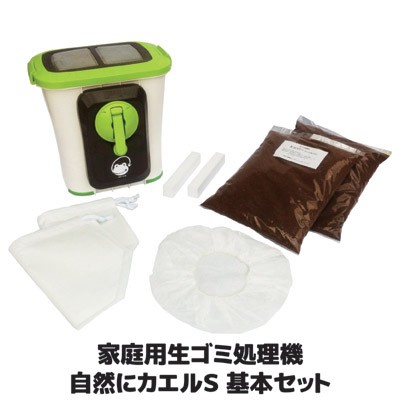 こちら電気代のかからない経済的な家庭用の生ゴミ処理機「自然にカエルS」は好気性(酸素を好む)微生物群のチカラで生ごみを有機分解する生ごみ処理器です。これを使えば、ゴミ出し日までのイヤな臭いを、もう気にすることはありません。使い方はカンタンで、酵素を活性化する機能を持った「エコパワーチップ」を入れた本体に、毎日出る生ゴミを投入してハンドルを数回まわすだけ。チップに含まれる好気性微生物が有機物をどんどん分解してくれます。独自に開発したチップ材は、生ゴミをスピーディーに分解するだけでなく、業界でも非常に珍しい、臭いの発生を抑える性能がありますので、キッチンなどのお部屋の中で使用が可能です。そして、不思議なことに、どんどんと生ゴミを投入していっても、分解された生ゴミは気体等になって無くなるため、量はほとんど増えません。生ゴミの量は約10分の1以下になります。大きさもコンパクトで、置き場所を選びません。電気を一切使わずトラブルも気にせずに長くご使用いただけます。生ゴミを分解したチップ材は、良質の肥料に変わりますので、家庭菜園や鉢植えなどにご使用いただけます。