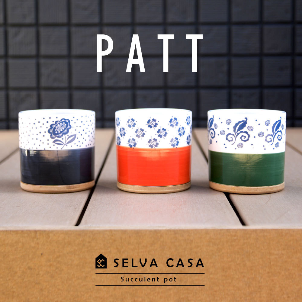 多肉植物鉢 PATT パット 柄3種 多肉鉢 ポット 竹製受け皿付多肉 植物 寄せ植え おしゃれ 柄 ポット プランター底穴有