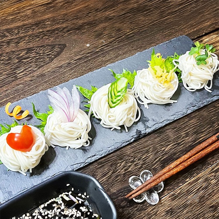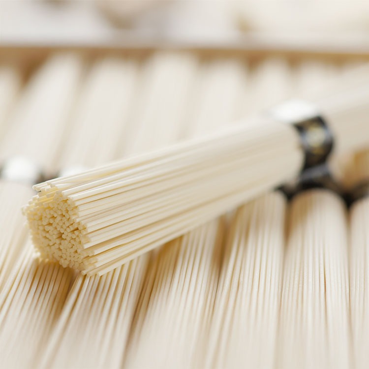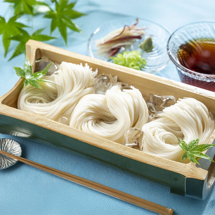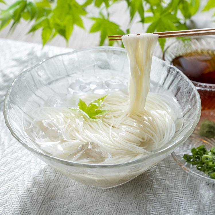 ゆで上がったら手早くザルに取り、冷たい水で十分に洗います。氷水で冷やすとよりコシが出ます。