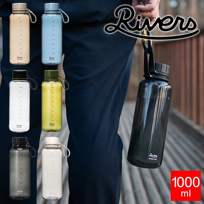 ウォーターボトル RIVERS スタウト エア プラスチックボトル 1000ml 1L 水筒 軽量ボトル stout air クリアボトル マイボトル シェーカー ハンドル付 取っ手付き