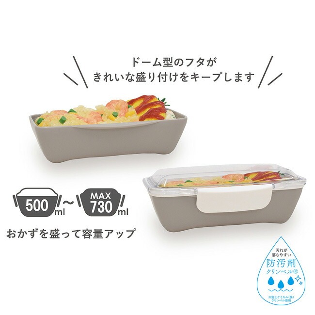 ドーム型のフタが盛り付けたおかずをつぶさず、
