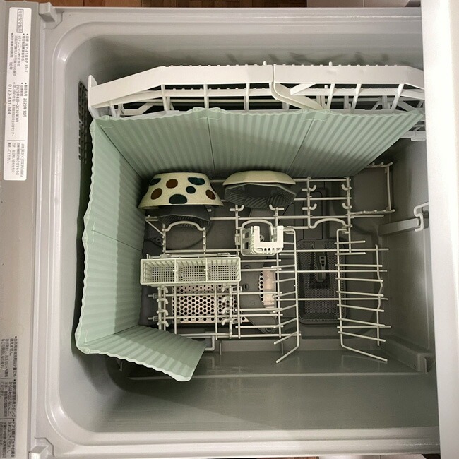 | 食洗機で洗えてお手入れ簡単。食器と一緒に入れられる薄型です。 |