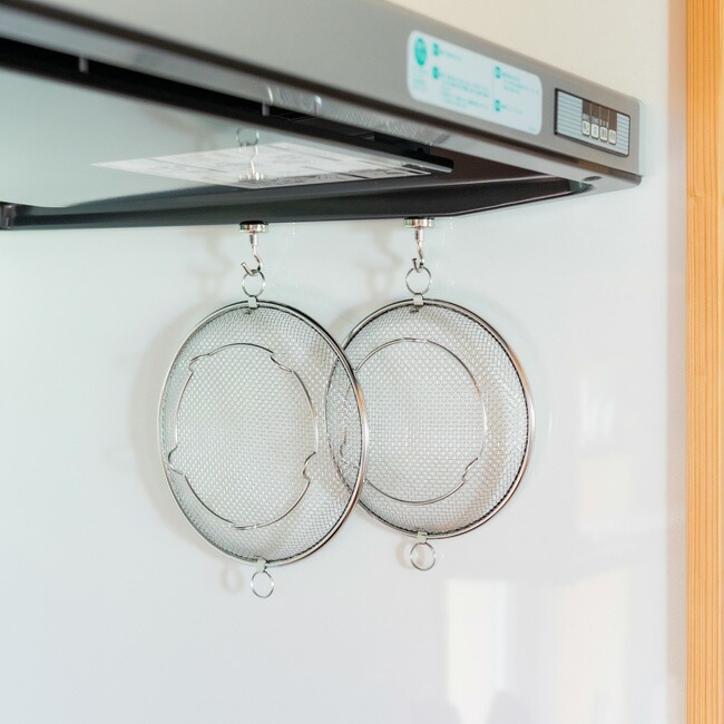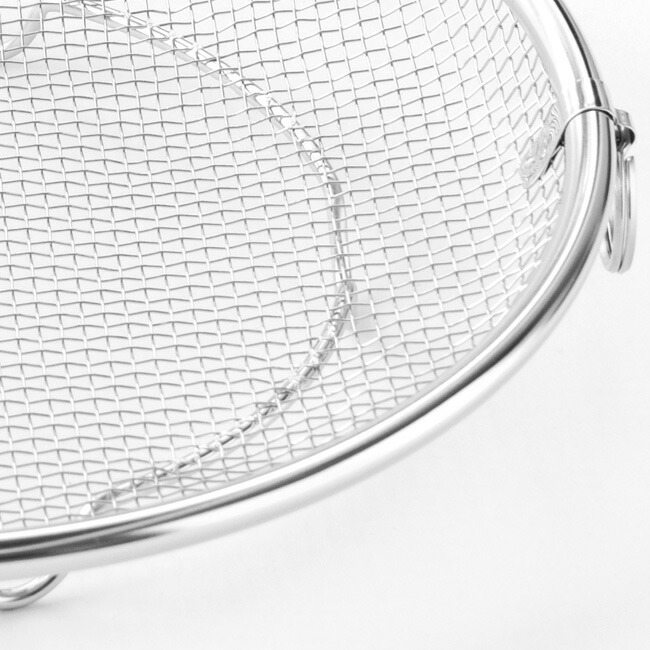 | 必要な時だけサッと取り出して使える脚付きの盆ざる。食器の水切りから麺料理、揚げ物、お鍋の具材、蒸し料理まで…幅広くお使いいただけます。取っ手がないので、鍋やフライパンにすっきり収まり、蒸し料理にも最適。持ち上げやすいフック付きだから、熱々の食材も安心して取り出せます。 |