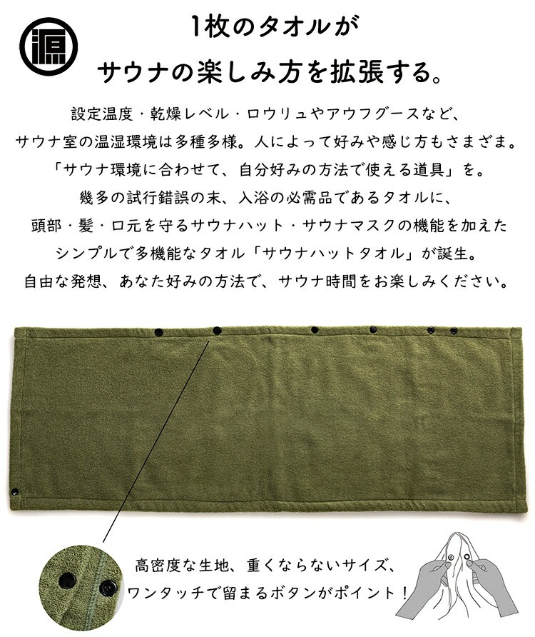 →ボタン配置を細かく設計しており、いつものタオル感覚でお使いいただけます。ボタン素材は、赤ちゃん製品にも使われるボタンで、身体を痛める心配を大幅に低減しており、高温使用にも対応しています(高温になることもあるので、サウナ室で長く触るのはお避けください)。