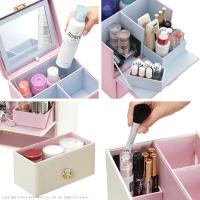 メイクアイテムの収納に悩む女性スタッフとお客様の声をつめこんだメイクボックス♪小物もボトルも入るいろんな工夫で、今まで片付けに困っていたメイクアイテムがすっきりと収まります!