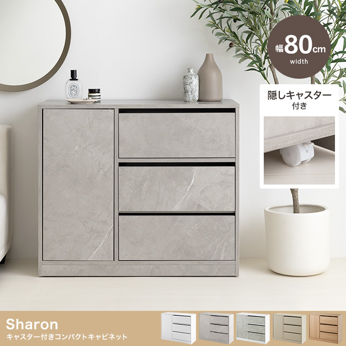 コンパクトサイズながらも収納力抜群な『Sharon(シャロン)』キャスター付きキャビネット。可動棚付きの扉収納とたっぷり入る3杯の引き出しは、雑多な生活感を隠し、お部屋をすっきりと演出。足元には正面から見えない隠しキャスター付きなので使う場所を選ばず、ワンルームやリビングにも置きやすくなっています。