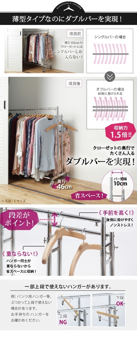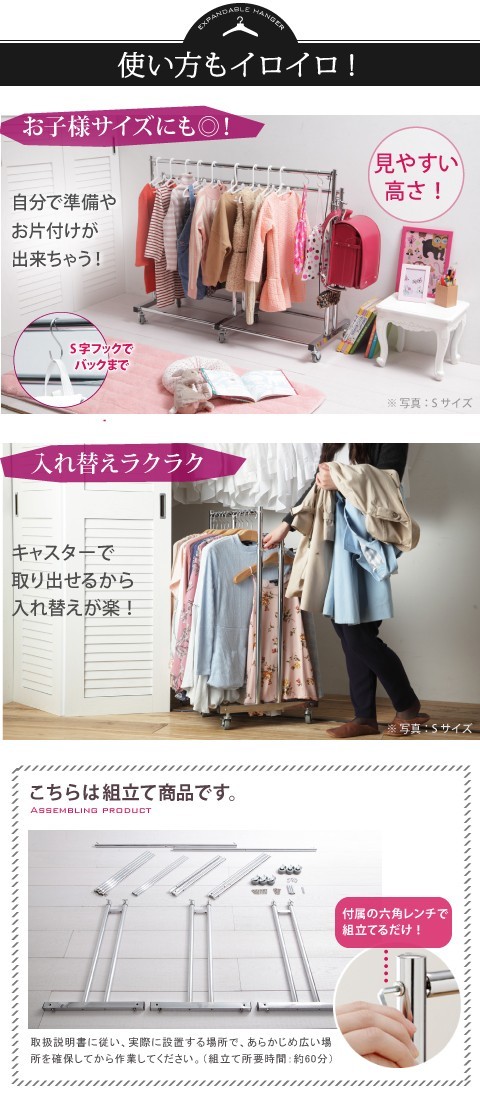 押入れ伸縮頑丈ハンガー [ キャスタータイプ ]
