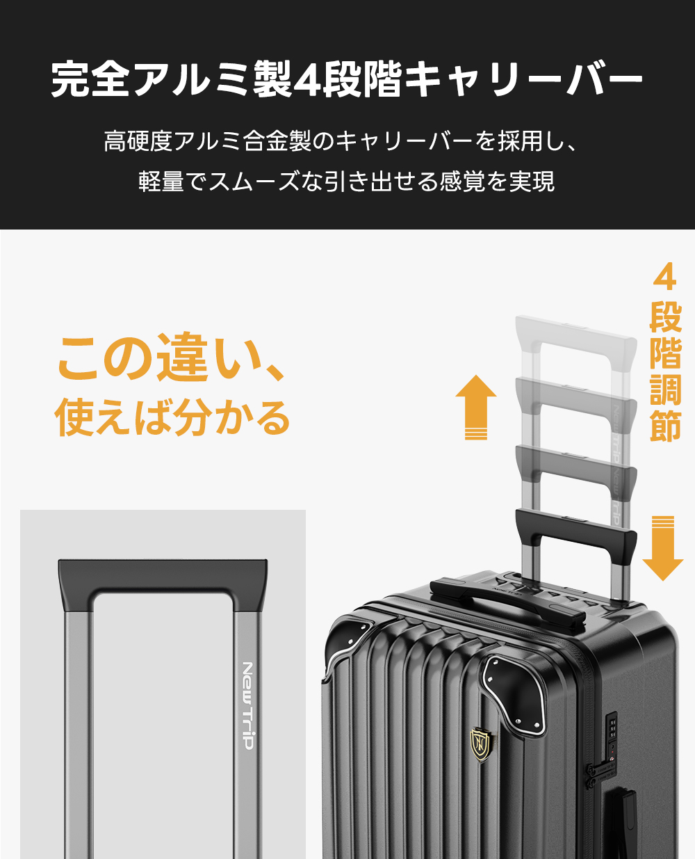 検索キーワード:スーツケース キャリーケース キャリーバッグ Mサイズ Lサイズ 68L/105L 超軽量 YKKファスナー TSAロック ファスナータイプ 耐衝撃 大型 静音 ダブルキャスター 旅行支援企画 旅行 修学旅行 海外旅行 国内旅行 GOTOトラベル ビジネス 出張 3-6泊/7-10泊 静音 360度回転 格安 大容量 傷が目たちにくい 安心 送料無料 NEW TRIP 即納 海外 国内 旅行 おすすめ かわいい 女子旅 全国旅行支援 大容量 New trip直営店