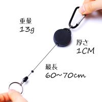 | 商品について | 【ミニカラビナ付きのリールキーホルダー】 最長で約70cmまで伸びるリール付きのカラビナキーホルダー。ミニカラビナをベルトループなどに引っ掛けておけば、キーリングとして、カギなどの落下防止にもなるカラビナリールキーホルダーです。 【シンプルブラックのカラビナリールキーホルダー】 無駄のないシンプルなデザインのカラビナリールキーホルダー。機能的なのはもちろん、ファッションアイテムとしてもオススメのカラビナリールキーホルダーです。 【使い方がいろいろあるカラビナリールキーホルダー】 普段使いのキーリングとしてはもちろん、登山やキャンプ、釣りやイベント、犬のお散歩など、小物をポケットから取り出さずに、スグに取り出すことが出来ます。リールは自動巻き取りなので、手を離すだけで、ラクラク収納のカラビナリールキーホルダーです。取り付ける場所もベルトループだけでなく、バッグの手提げ紐などでも便利に使えます。 【軽量で小さいので邪魔にならないカラビナリールキーホルダー】 軽くて小さいので、身に着けていても邪魔にならないカラビナリールキーホルダー。余計な装飾やロゴなどが付いていないシンプルデザインなところも魅力のカラビナリールキーホルダーです。 【リールを軽く引っ張れるカラビナリールキーホルダー】 リールの伸縮力は、固くもなく緩くもない、あまり力を入れずに指先で引っ張れるぐらいで、とても使いやすいカラビナリールキーホルダーです。 |