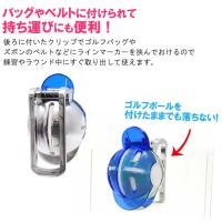 ■バッグやベルトに付けられるので持ち運びにも便利なラインマーカー後ろに付いているクリップで、ゴルフバッグやベルトなどに、ボールを挟んだままラインマーカーを引っ掛けられるので、練習やラウンド中にスグに取り出して使えるゴルフボールラインマーカーです。