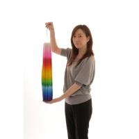 7cm角折り紙20色の折り鶴を白〜紫のグラデーションになるようにつなげた千羽鶴の完成品です。