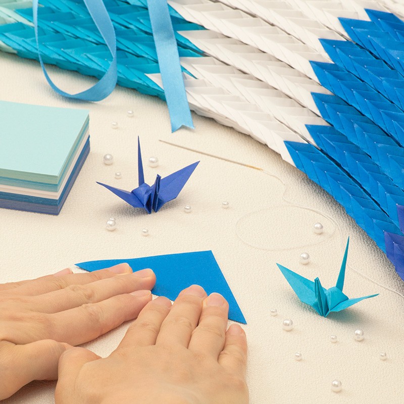 千羽鶴キットM ブルー5色 手作りキット 千羽鶴用折り紙と材料のセット Mサイズ(7.5cm角折り紙)