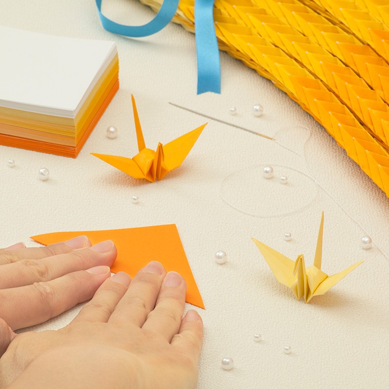 千羽鶴キットM オレンジ5色 手作りキット 千羽鶴用折り紙と材料のセット Mサイズ(7.5cm角折り紙)