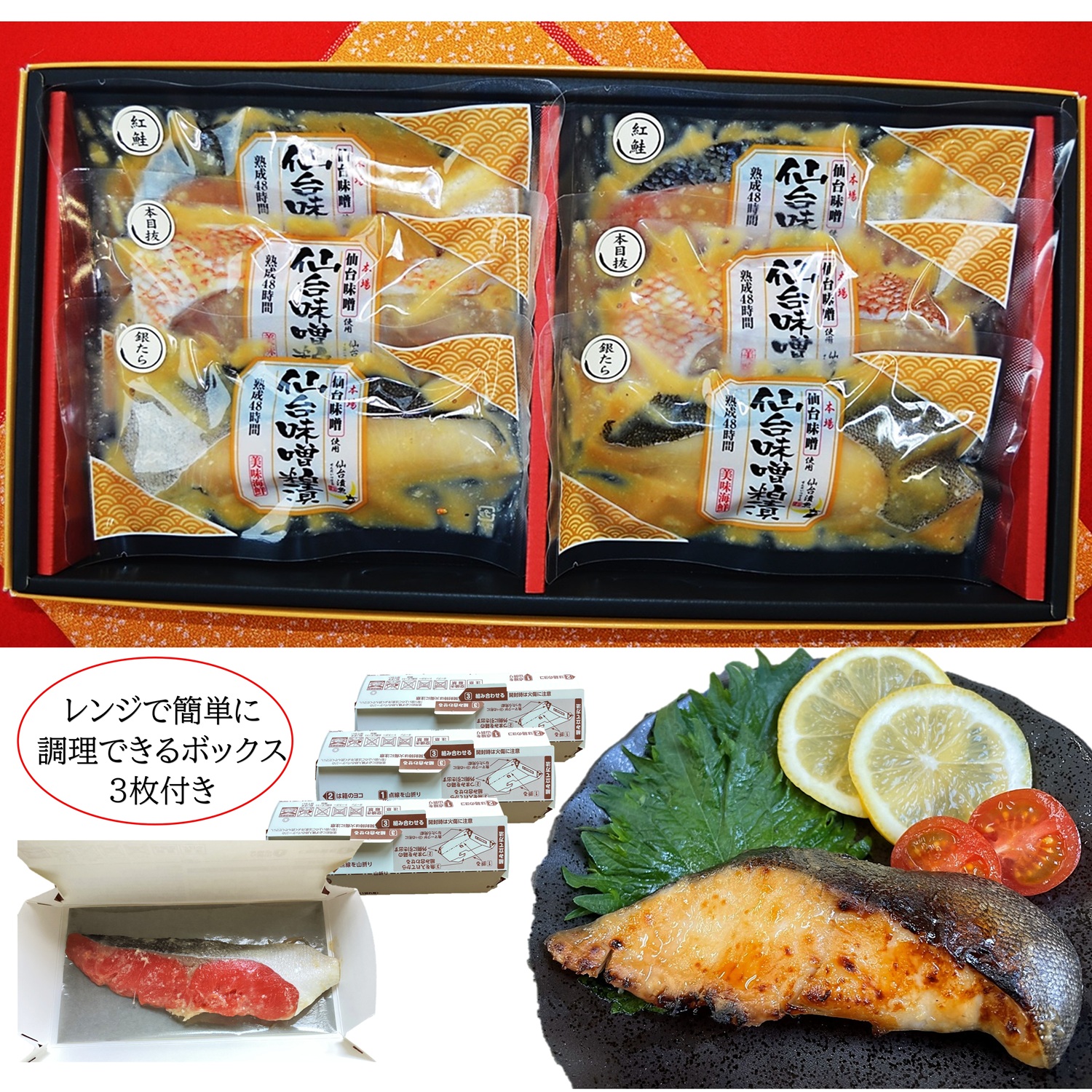 漬魚 お歳暮 ご贈答【仙台漬魚】贈られて嬉しいレンジで簡単焼き魚ボックス付き仙台味噌漬3種6切ギフト