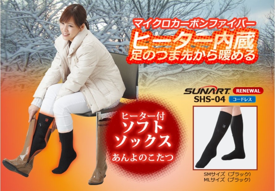 電熱ソックス 電熱靴下 電熱ウェア あんよのこたつ M&Lサイズ SHS-04(M/L) クマガイ電工 日本製 繊維ヒーター 釣り フィッシング 冬 アウトドア SUNART
