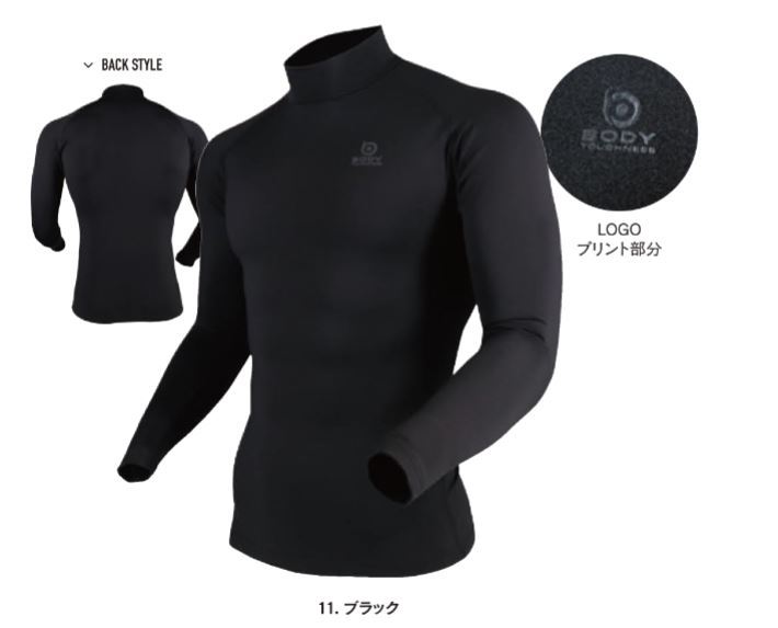 JW-275 11.ブラック BTパワーストレッチ サーモデオ ハイネックシャツ おたふく手袋 保温 速乾 消臭 あったか 防寒肌着 防寒ウェア