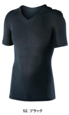JW-622 52. ブラック BT冷感・消臭パワーストレッチ 半袖Vネックシャツ おたふく手袋 冷感 消臭 吸汗 速乾