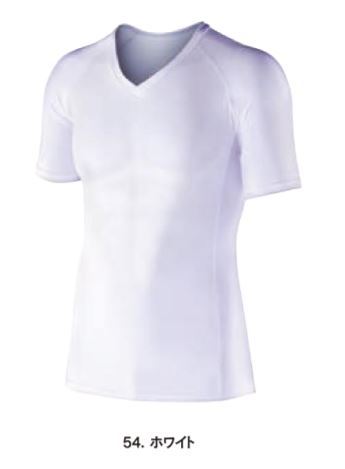 JW-622 54 ホワイト BT冷感・消臭パワーストレッチ 半袖Vネックシャツ おたふく手袋 冷感 消臭 吸汗 速乾