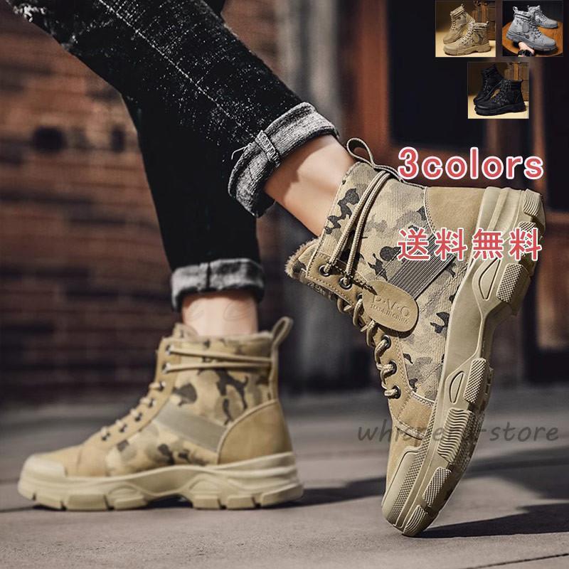 スノーブーツ ワークシューズ スノーシューズ ウィンターブーツ スニーカー 冬靴 防寒靴 メンズ レースアップ カモフラージュ 裏起毛 ボア アウトドア 防水
