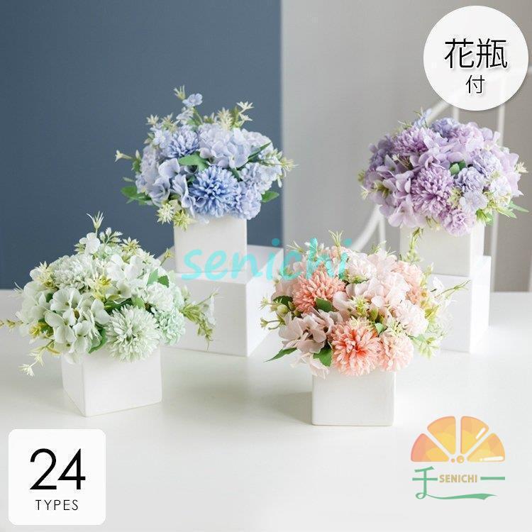 造花 インテリア 花瓶付き フラワーアレンジメント ブーケ パーツ 大きい 仏花 プレゼント ギフト 引越し祝い 結婚祝い 退職祝い アートフラワー シンプル スクエア イエロー ピンク ホワイト グリーン パープル ブルー 寝室 フェミニン スタイリッシュ 花 30b]