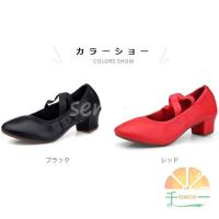 ダンスシューズ レディース バレエシューズ PUレザー フェイクレザー ミドルヒール ローカット バレエ 柔らかい チャンキーヒール エレガント 秋新作
