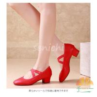 ダンスシューズ レディース バレエシューズ PUレザー フェイクレザー ミドルヒール ローカット バレエ シューズ ダンス 靴 柔らかい チャンキーヒール エレガント 秋新作
