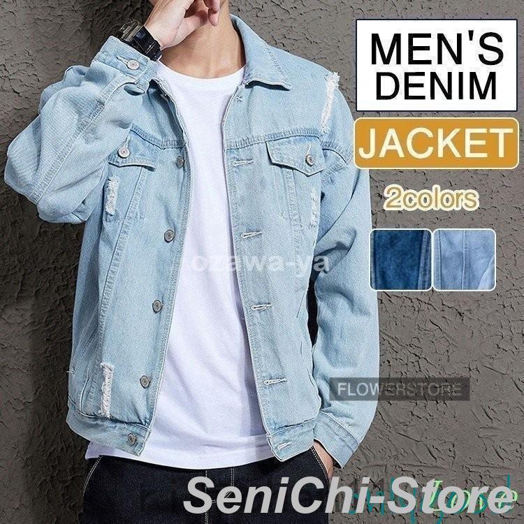 Gジャン ジージャン 秋 メンズ デニムジャケット ヴィンテージ ジャンパー カジュアル デニム 細身 お兄系 カッコイイ 春物 ダメージ加工