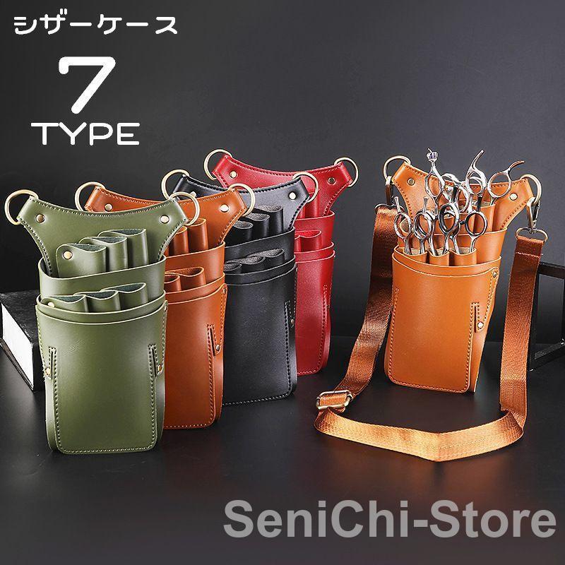 シザーケース シザーバッグ ベルト付 PUレザー 大容量 多機能 軽量 ハサミ6丁挿し 美容師 トリマー 理容師 花屋 プロ用