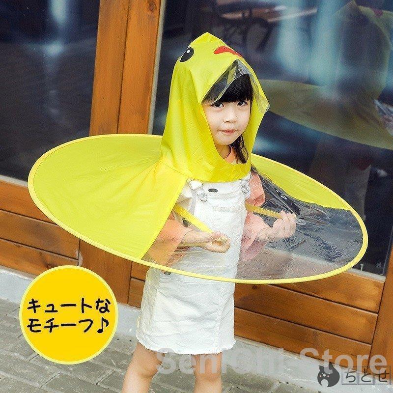 ハンズフリー傘 キッズ 子供用 帽子風傘 キャップレインコート レインハット風 ポンチョ風 雨具 レインウェア 雨合羽 雨がっぱ アヒル カエル かわ