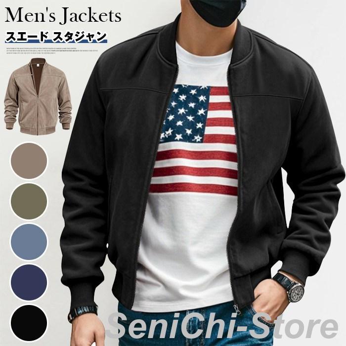スエード スタジャン メンズ ジャケット 長袖 ジップアップ スタジアムジャケット アウター ブルゾン 上着 羽織 秋 冬 無地 トップス 大人 おしゃれ カジュアル シンプル ファッション 秋物 春物 冬