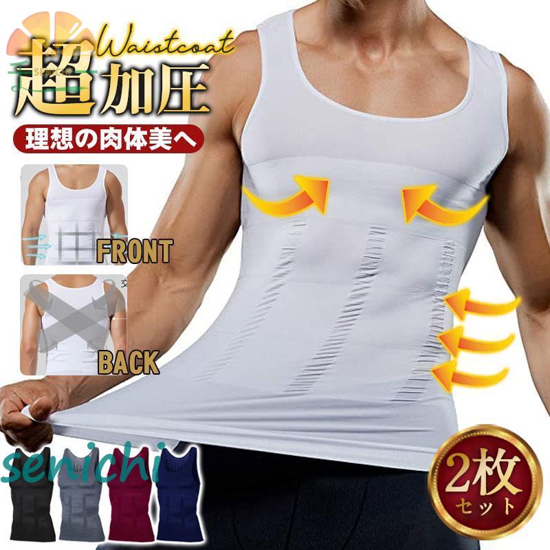 2枚セット 加圧タンクトップ メンズ 加圧シャツ 加圧インナー トップス 動きやすい ノースリーブ 補正下着 引き締め 着圧 お腹 姿勢 矯正