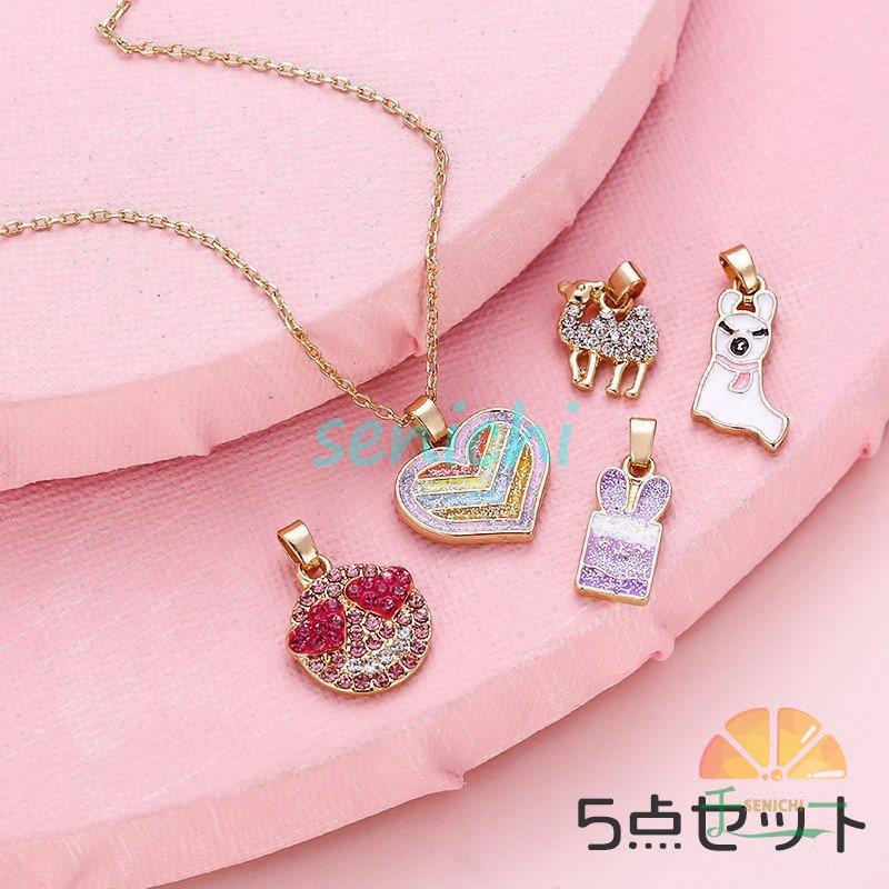 ペンダント ネックレス 5点セット アクセサリー キッズ 子供用 レディース アレンジ ラインストーン ハート 犬 ラクダ うさぎ 交換可能 かわいい