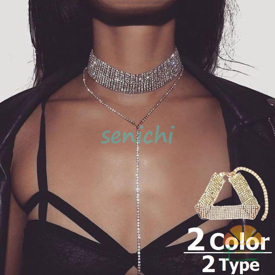 チョーカー 首飾り レディース ネックレス アクセサリー キラキラ ラインストーン タッセル付き ゴールドカラー シルバーカラー おしゃれ きれいめ
