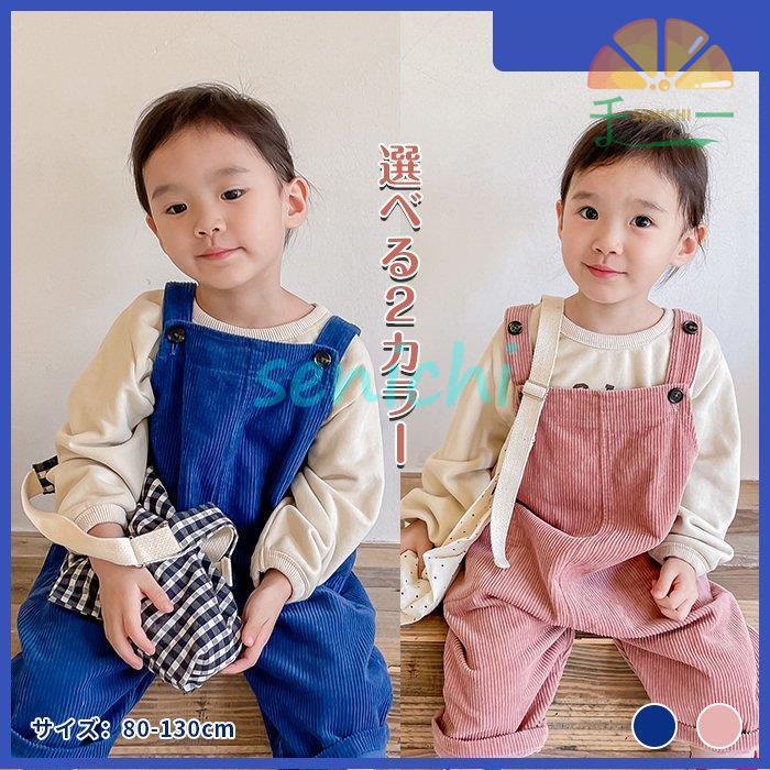 キッズ 子供服 長袖 長ズボン ボトム オーバーオール 男の子 女の子 姉妹 兄弟 お揃い 色違い 通園 通学 幼児 保育園 小学生 ボーイズ ガールズ プリント ロゴ ジュニア アメカジ 韓国子供服 シンプル ジュニア コーデュロイ素材