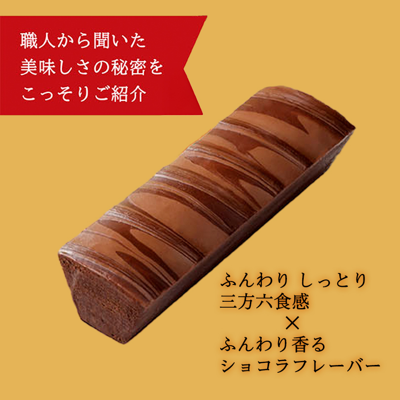 原材料 鶏卵、砂糖、バター、小麦粉、植物油脂、水あめ、ココア、全粉乳、ココアバター、カカオマス、洋酒、乳化剤(大豆由来)、膨張剤、香料