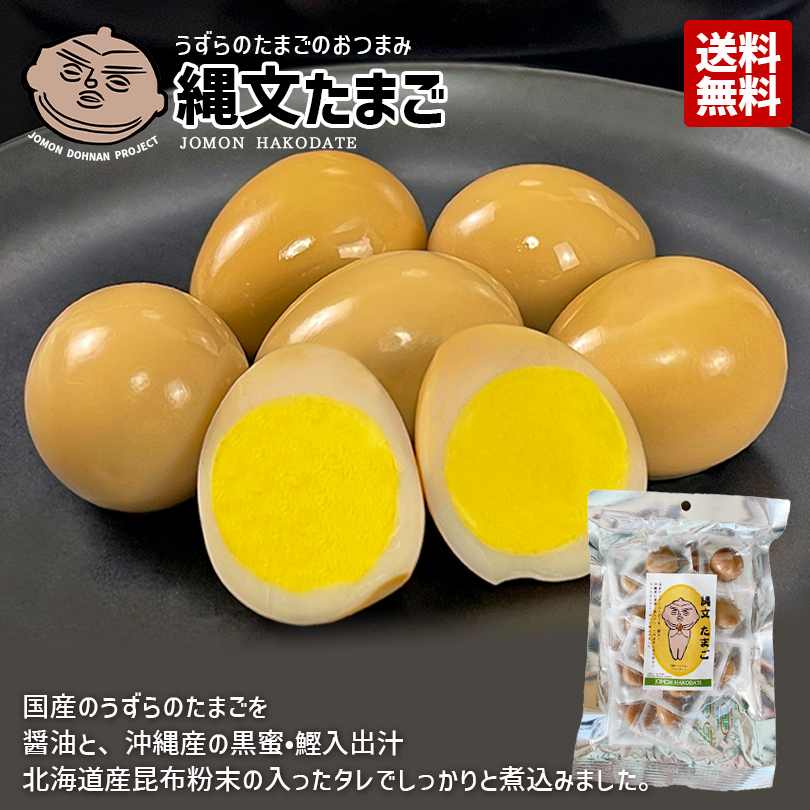国産のうずらのたまごを、醤油と沖縄産の黒蜜・鰹入ダシ・北海道産の昆布粉末の入ったタレでしっかりと煮込みました。