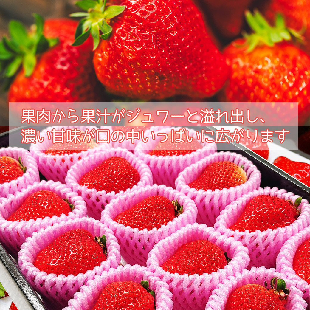 土づくりと温度管理を徹底し美味しさを最大限に引き出し、大粒で甘味のあるいちごに育ちました。