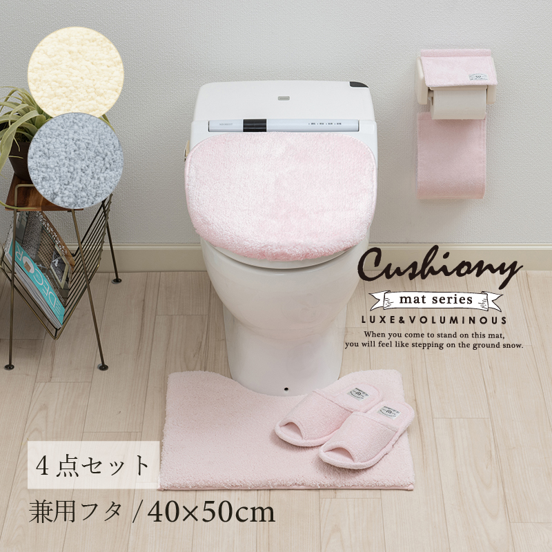 トイレマットセット 4点 約40×50cm ミニトイレマット+兼用フタカバー+スリッパ+ペーパーホルダーカバーN B.B.Collection クッショニー3 センコー