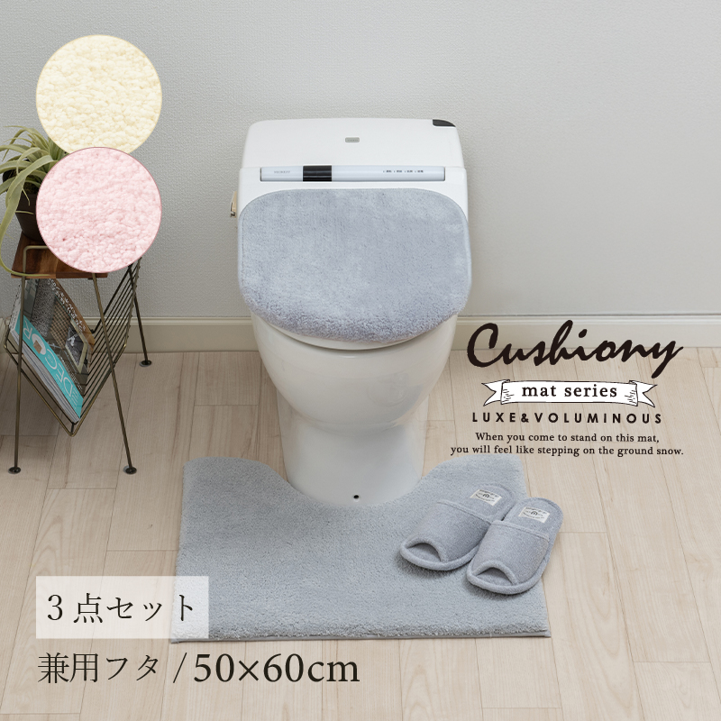 ●商品名:トイレマットセット 3点 約50×60cm トイレマット+兼用フタカバー+スリッパ B.B.Collection クッショニー3 センコー