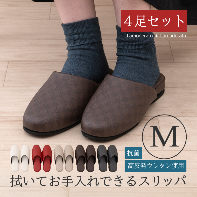 ●商品名:スリッパ 来客用 4足セット ルームシューズ おしゃれ 室内 室内履き ふける 高級感 ルームスリッパ まとめ買い M/約23.5-25cm FEEL FOOT チェッカー センコー