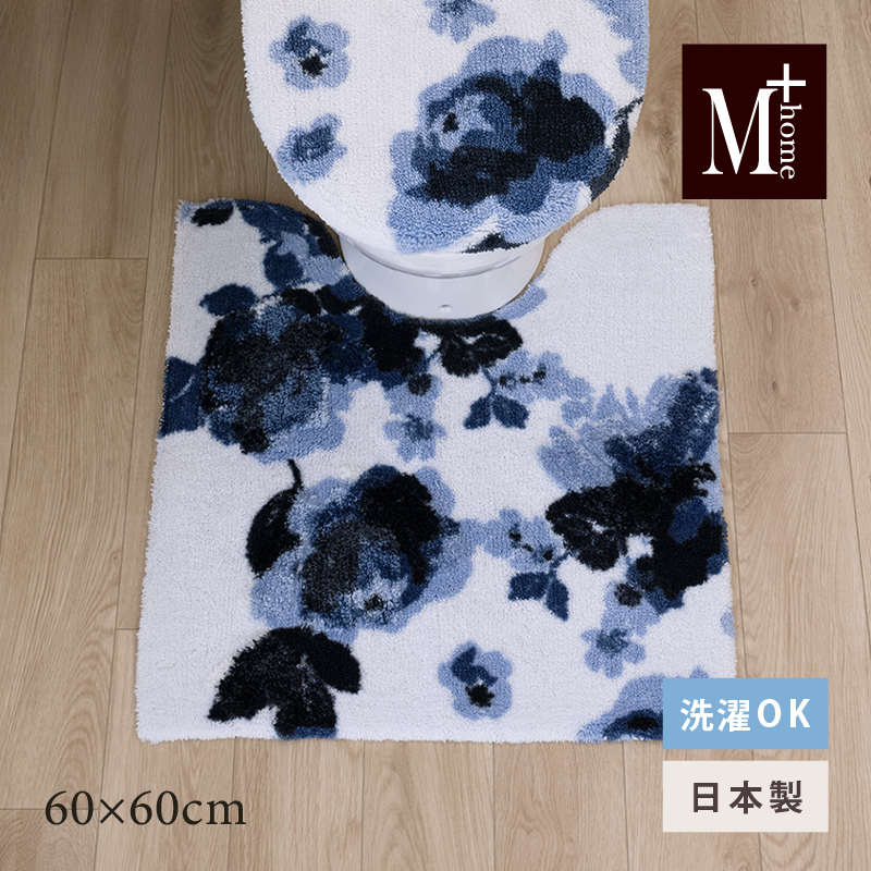 ●商品名:爆買 トイレマット 約60×60cm 洗える おしゃれ 滑り止め トイレタリー トイレ用品 ブランド M+home クッカ ネイビーブルー センコー