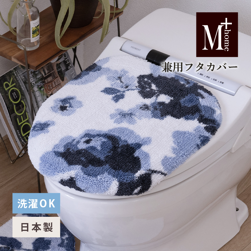 トイレフタカバー 吸着 兼用フタカバー 洗える おしゃれ 花柄 貼る M+home クッカ ネイビーブルー センコー
