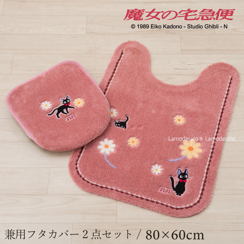トイレマットセット 2点 ロングトイレマット+兼用フタカバー (魔女の宅急便/花さんぽ) ピンク センコー