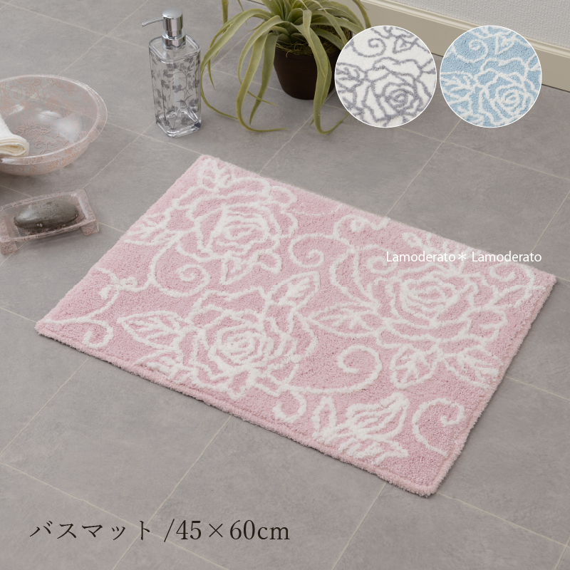 2色の優しい色使いで、バラの模様を全面に描いたバスマット。