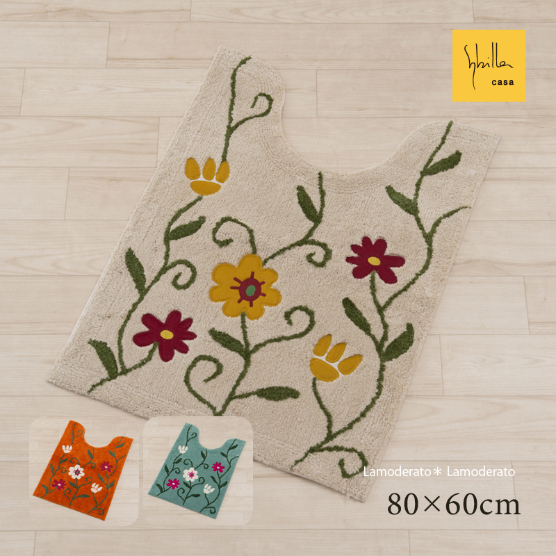 トイレマット ロング おしゃれ 洗える 長い 綿 コットン 滑り止め ブランド 約80×60cm (シビラ/フラワーガーデン) 単品 センコー