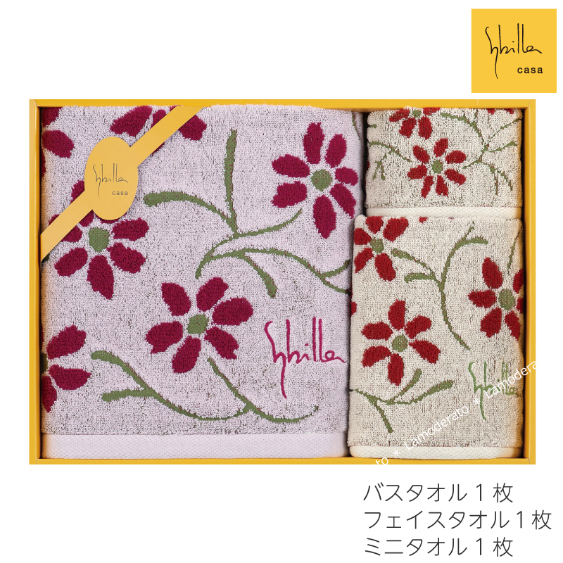 タオル ギフト おしゃれ ブランド バスタオル フェイスタオル ミニタオル シビラ エンラサーダ2 バス&フェイス&ミニタオルセット ギフトケース入 センコー